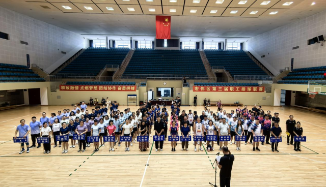 为纪念中国人民抗日战争暨世界反法西斯战争胜利80周年,宏伟区总工会在辽化体育馆举办第三届职工排球联赛。